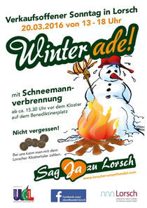 Am Sonntag, den 20. März, wird in der Lorscher Innenstadt der Tradition folgend erneut der Schneemann verbrannt, auch wenn er sich gerüchteweise diesmal mit einer verlängerten Route durch die Bahnhofstraße noch stärker gegen sein Ableben wehren wird als in den Vorjahren. Ab 15.30 Uhr begibt sich der Winterbote, wie gewohnt detailreich und liebevoll von Stephan Straub vorbereitet, begleitet vom Spielmannszug der Freiwilligen Feuerwehr auf seinen Weg bis vor die Königshalle.