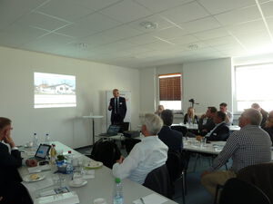 Den Anfang machte Gastgeber und Hausherr Dr. Michael Müller – der geschäftsführende Gesellschafter der Oskar Widmer GmbH hat das Unternehmen 2010 übernommen und konnte vor allem praxisnahe Einblicke zur Mitarbeiterführung während der Unternehmensnachfolge gewähren. Als Beispiel nannte er unter anderem die Herausforderung, dass man in dieser Situation mit einem vorhandenen Mitarbeiterstamm neue Ziele und Projekte koordinieren müsse ohne von Beginn an mit den Fähigkeiten der Angestellten vertraut zu sein.